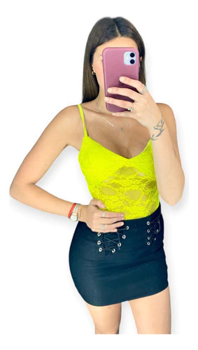 Body elastizado de encaje, escote V con tazasp push up. No tiene para abrochar abajo.