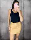 Pollera de brillos glitter elastizada tiro Alto con tajo.