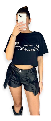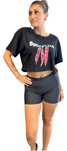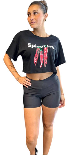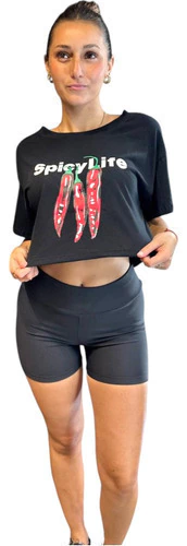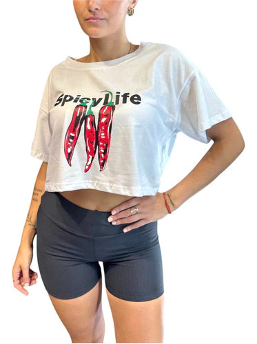Remera crop manga corta de algodon con estampa "SPICY LIFE".