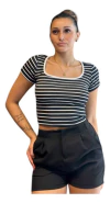 Remera Corta Baby Tee Morley Rayado Manga Corta - comprar online Remera Corta Baby Tee Morley Rayado Manga Corta - comprar online