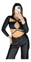 Remera Crop Lycra Brillo Cut Out C/ Aros Y Tira - comprar online Remera Crop Lycra Brillo Cut Out C/ Aros Y Tira - comprar online